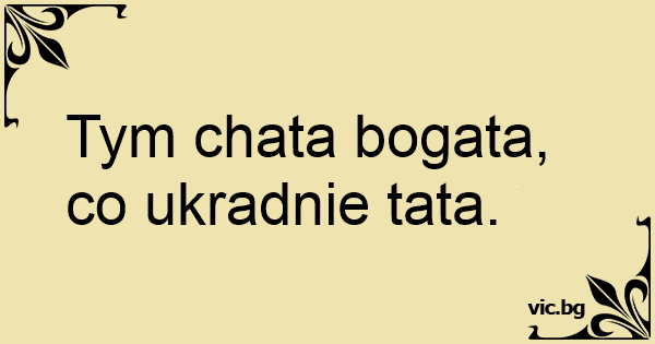 Tym chata bogata, co ukradnie tata.