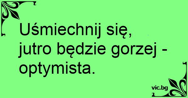 Uśmiechnij się, jutro będzie gorzej - optymista.