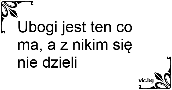 Ubogi jest ten co ma, a z nikim się nie dzieli