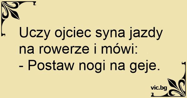 Uczy ojciec syna jazdy na rowerze i mówi: