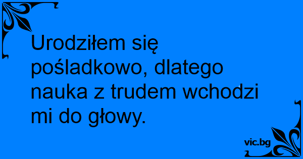 Urodziłem się pośladkowo, dlatego nauka z trudem wchodzi mi do głowy.