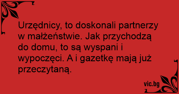 Urzędnicy, to doskonali partnerzy w małżeństwie. Jak przychodzą do domu, to są wyspani i wypoczęci. A i gazetkę mają już przeczytaną.