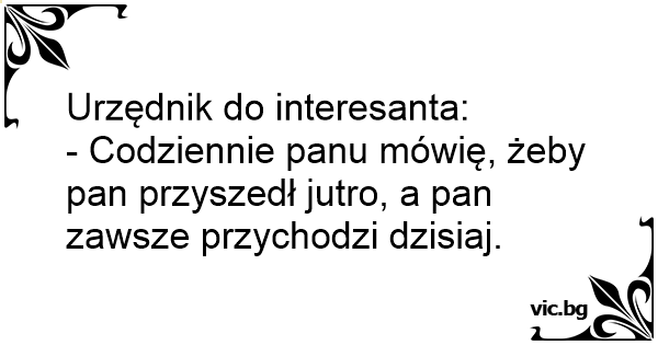 - Codziennie panu mówię, żeby pan przyszedł jutro, a pan zawsze przychodzi dzisiaj.