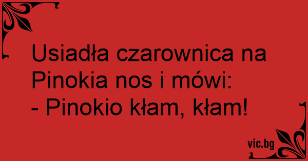 Usiadła czarownica na Pinokia nos i mówi: