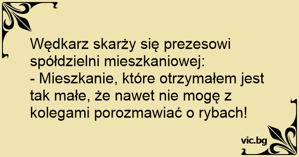 - Mieszkanie, które otrzymałem jest tak małe, że nawet nie mogę z kolegami porozmawiać o rybach!