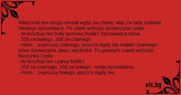 - Ile kosztuje ten biały gumowy fiutek? Sprzedawca mówi: