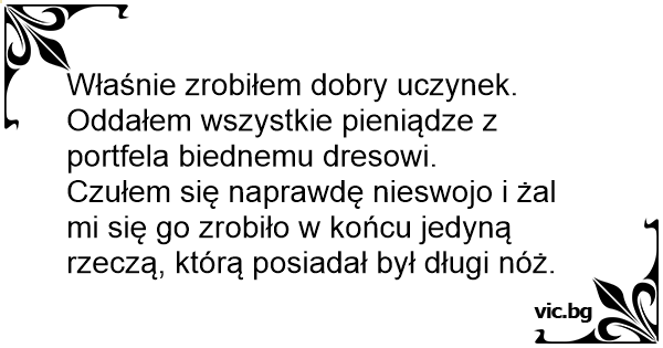 Właśnie zrobiłem dobry uczynek. Oddałem wszystkie pieniądze z portfela biednemu dresowi.