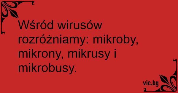 Wśród wirusów rozróżniamy: mikroby, mikrony, mikrusy i mikrobusy.