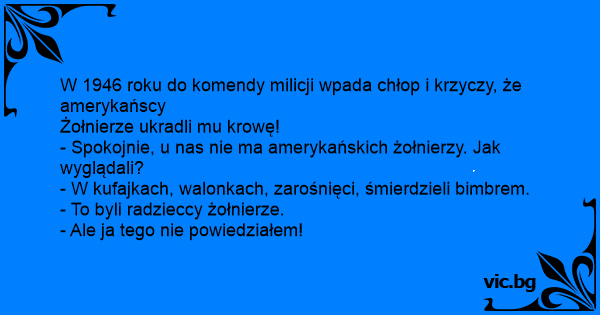 W 1946 roku do komendy milicji wpada chłop i krzyczy, że amerykańscy