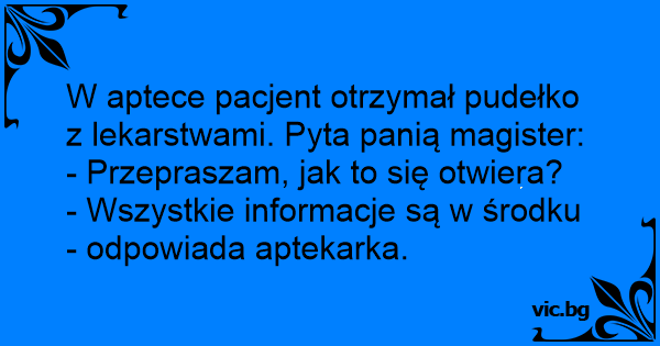 W aptece pacjent otrzymał pudełko z lekarstwami. Pyta panią magister: