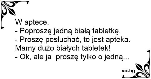 - Proszę posłuchać, to jest apteka. Mamy dużo białych tabletek!