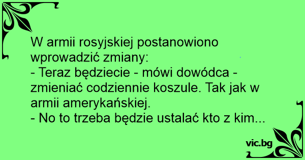 - Teraz będziecie - mówi dowódca - zmieniać codziennie koszule. Tak jak w armii amerykańskiej.
