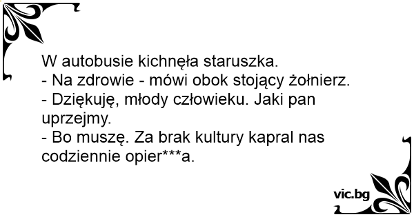 - Bo muszę. Za brak kultury kapral nas codziennie opier***a.