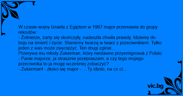 - Zukerman! - złości się major - ... Ty idioto, na co ci to?!