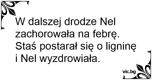 W dalszej drodze Nel zachorowała na febrę. Staś postarał się o ligninę i Nel wyzdrowiała.