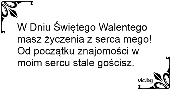 W Dniu Świętego Walentego masz życzenia z serca mego! Od początku znajomości w moim sercu stale gościsz.