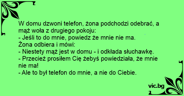 W domu dzwoni telefon, żona podchodzi odebrać, a mąż woła z drugiego pokoju:
