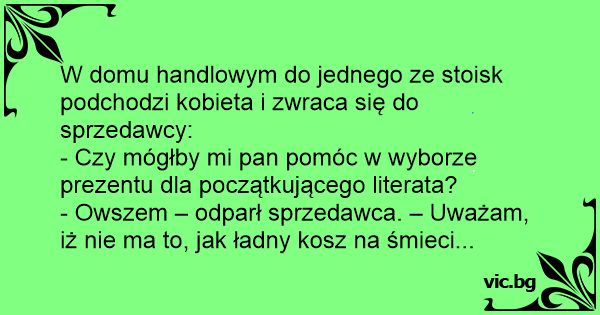- Owszem – odparł sprzedawca. – Uważam, iż nie ma to, jak ładny kosz na śmieci...
