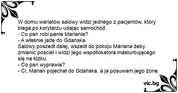- Ci, Marian pojechał do Gdańska, a ja posuwam jego żonę.
