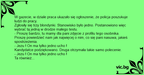 Zgłosiły się trzy blondynki. Stanowisko było jedno. Postanowiono więc wybrać tą jedną w drodze małego testu.