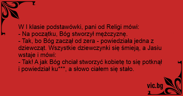 - Tak! A jak Bóg chciał stworzyć kobietę to się potknął i powiedział ku***, a słowo ciałem się stało.
