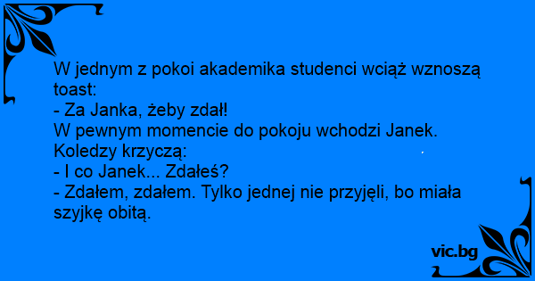 - Zdałem, zdałem. Tylko jednej nie przyjęli, bo miała szyjkę obitą.