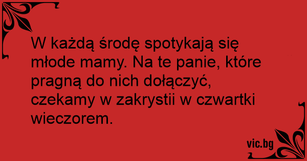 W każdą środę spotykają się młode mamy. Na te panie, które pragną do nich dołączyć, czekamy w zakrystii w czwartki wieczorem.