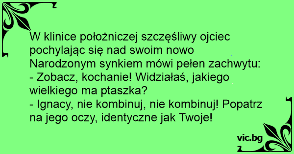 - Ignacy, nie kombinuj, nie kombinuj! Popatrz na jego oczy, identyczne jak Twoje!