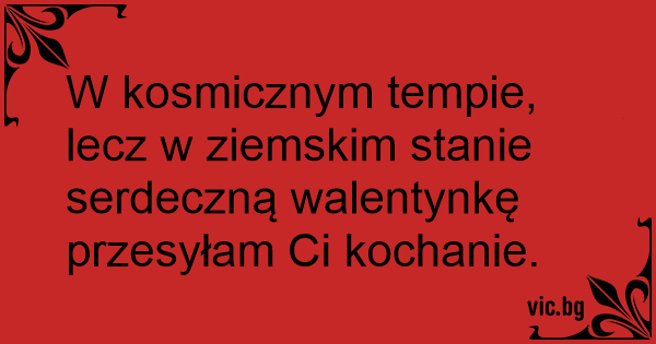 W kosmicznym tempie, lecz w ziemskim stanie serdeczną walentynkę przesyłam Ci kochanie.