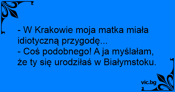 - Coś podobnego! A ja myślałam, że ty się urodziłaś w Białymstoku.
