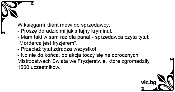 - Mam taki w sam raz dla pana! - sprzedawca czyta tytuł: