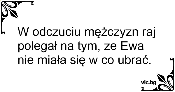 W odczuciu mężczyzn raj polegał na tym, ze Ewa nie miała się w co ubrać.