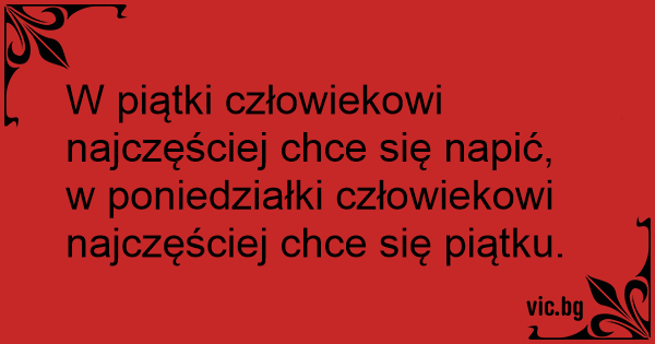 W piątki człowiekowi najczęściej chce się napić, w poniedziałki człowiekowi najczęściej chce się piątku.