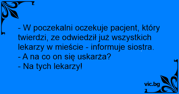 - W poczekalni oczekuje pacjent, który twierdzi, ze odwiedził już wszystkich lekarzy w mieście - informuje siostra.