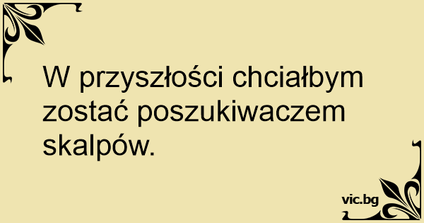 W przyszłości chciałbym zostać poszukiwaczem skalpów.