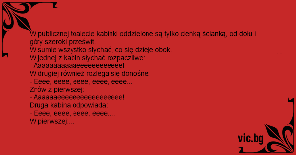 W publicznej toalecie kabinki oddzielone są tylko cieńką ścianką, od dołu i góry szeroki prześwit.