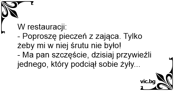 - Poproszę pieczeń z zająca. Tylko żeby mi w niej śrutu nie było!