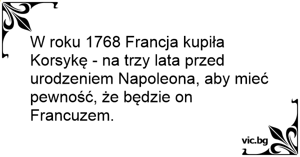 W roku 1768 Francja kupiła Korsykę - na trzy lata przed urodzeniem Napoleona, aby mieć pewność, że będzie on Francuzem.