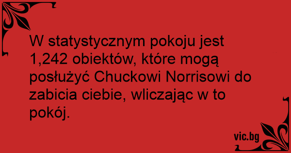 W statystycznym pokoju jest 1,242 obiektów, które mogą posłużyć Chuckowi Norrisowi do zabicia ciebie, wliczając w to pokój.