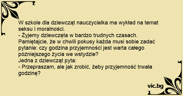 - Przepraszam, ale jak zrobić, żeby przyjemność trwała godzinę?