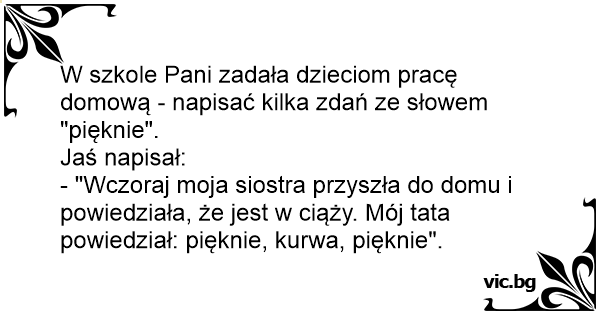 W szkole Pani zadała dzieciom pracę domową - napisać kilka zdań ze słowem "pięknie".