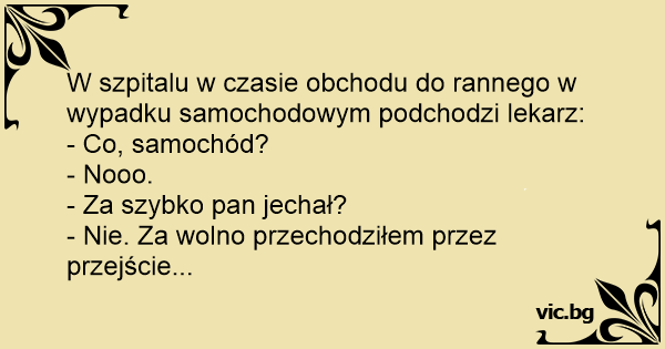 W szpitalu w czasie obchodu do rannego w wypadku samochodowym podchodzi lekarz: