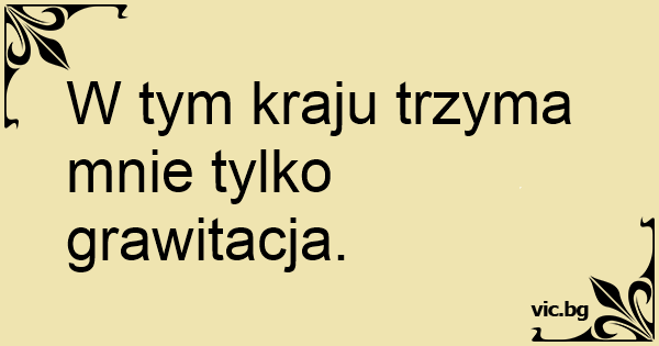 W tym kraju trzyma mnie tylko grawitacja.