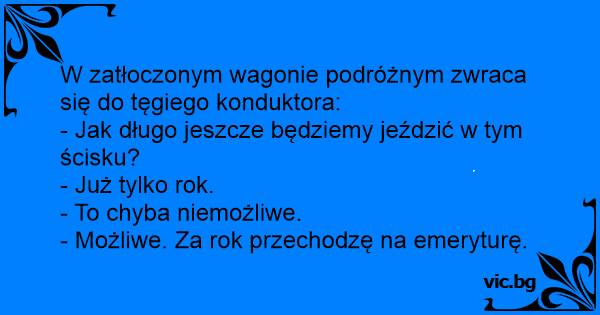 W zatłoczonym wagonie podróżnym zwraca się do tęgiego konduktora: