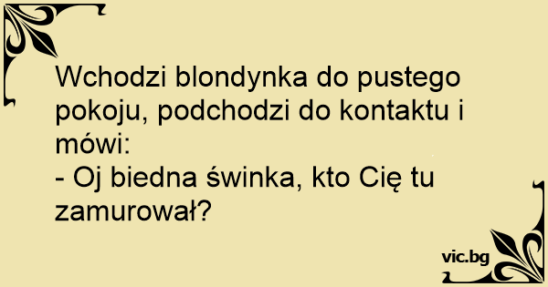 Wchodzi blondynka do pustego pokoju, podchodzi do kontaktu i mówi: