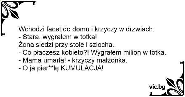 - Co płaczesz kobieto?! Wygrałem milion w totka.