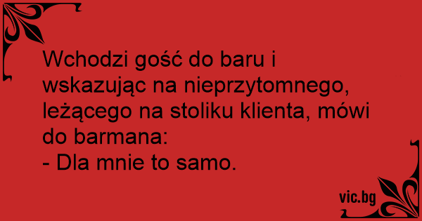 Wchodzi gość do baru i wskazując na nieprzytomnego, leżącego na stoliku klienta, mówi do barmana: