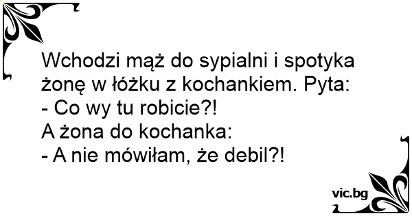 Wchodzi mąż do sypialni i spotyka żonę w łóżku z kochankiem. Pyta: