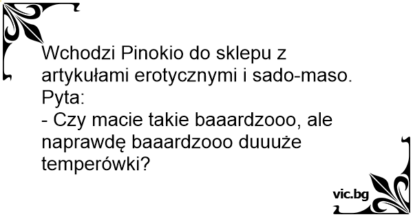 Wchodzi Pinokio do sklepu z artykułami erotycznymi i sado-maso. Pyta: