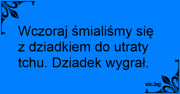 Wczoraj śmialiśmy się z dziadkiem do utraty tchu. Dziadek wygrał.